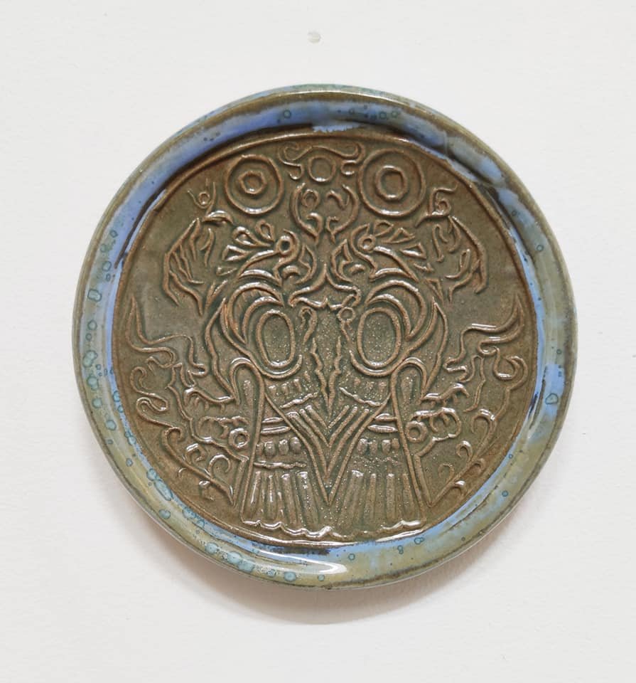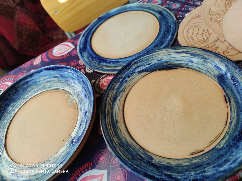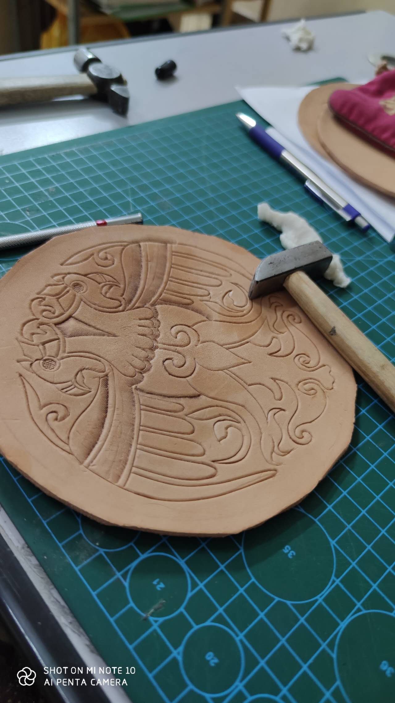 Material: Leather, clay, copper, wood Leather carving, ceramic, plate, Adwar