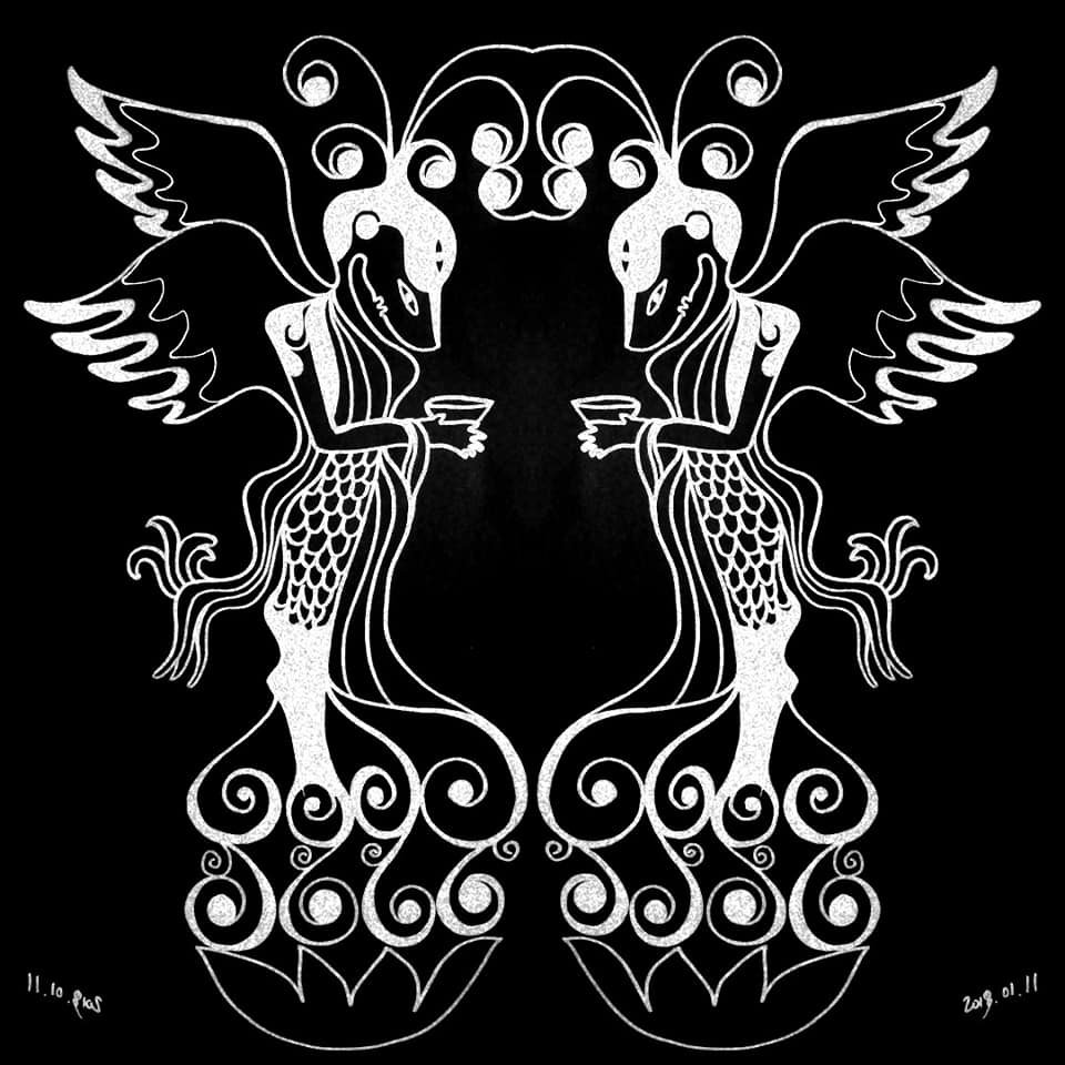 Эртний нийслэл Хархориноос олдсон олдвор болон Дүрслэх урлагийн музейд VII зууны үед холбогдох Төв аймгийн Заамар сумын нутгаас бунхант оршуулгийн олдвор дахь хүн-шувуунаас төрсөн сэтгэгдэл өгөгдлөөр энэхүү зургийг 2017 онд зурж байснаа та бүхэнтэй хуваалцаж байна.