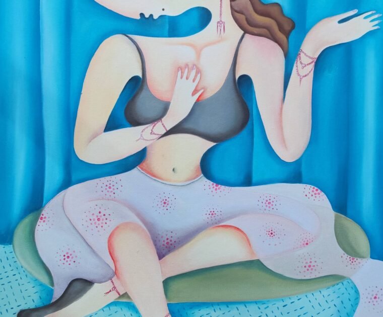 A woman resting in her dream in a field of Dali flowers