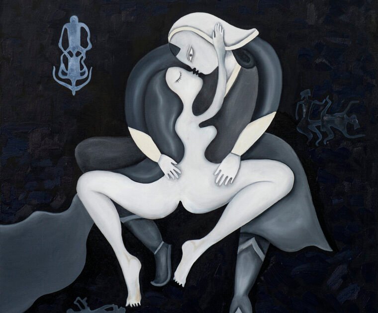 After reading a poem by poet A. Lkhagva, I created a composition based on my impression—first crafted with leather and later painted at a beauty salon.