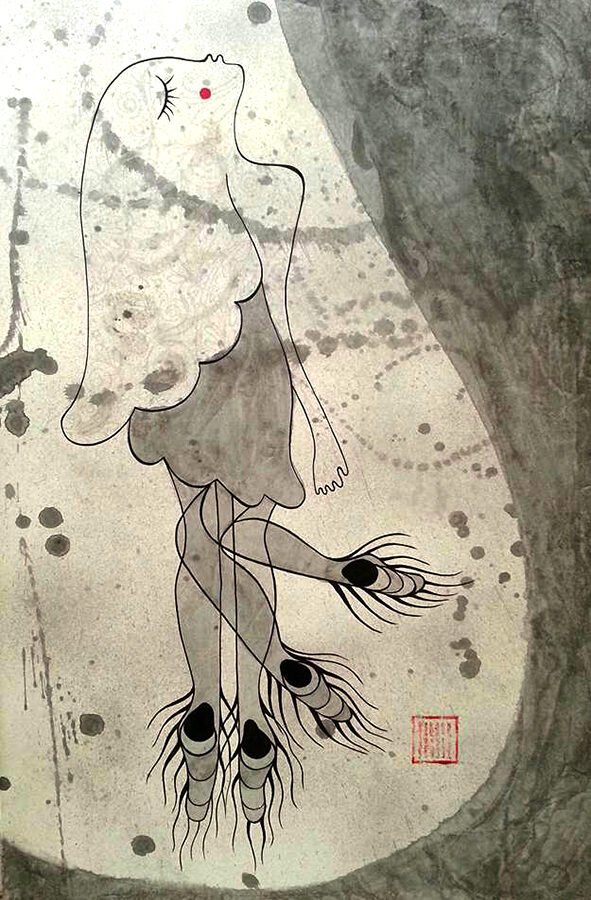 Эрхэм найз Д.Отгонцагааны “Бороон дундах нисэлт” шүлгийн номны хавтасанд зориулж зурахдаа түүний дотор нисэж буй хүн шувууг зургаар илэрхийлхийг зорьсон.