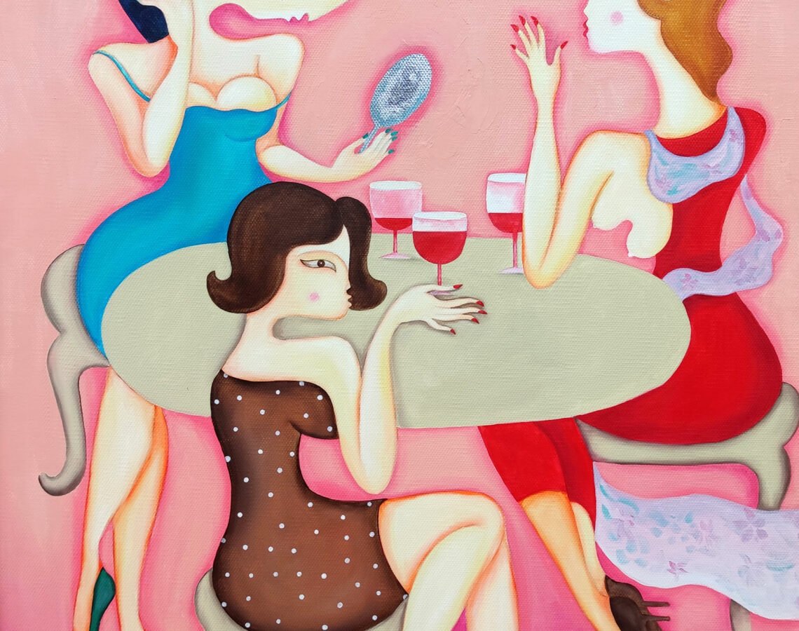 After reading a poem by poet A. Lkhagva, I created a composition based on my impression — first crafted with leather and later painted at a beauty salon. The women at the beauty salon recreated my painting in a photo shoot, and it turned out really lovely.
