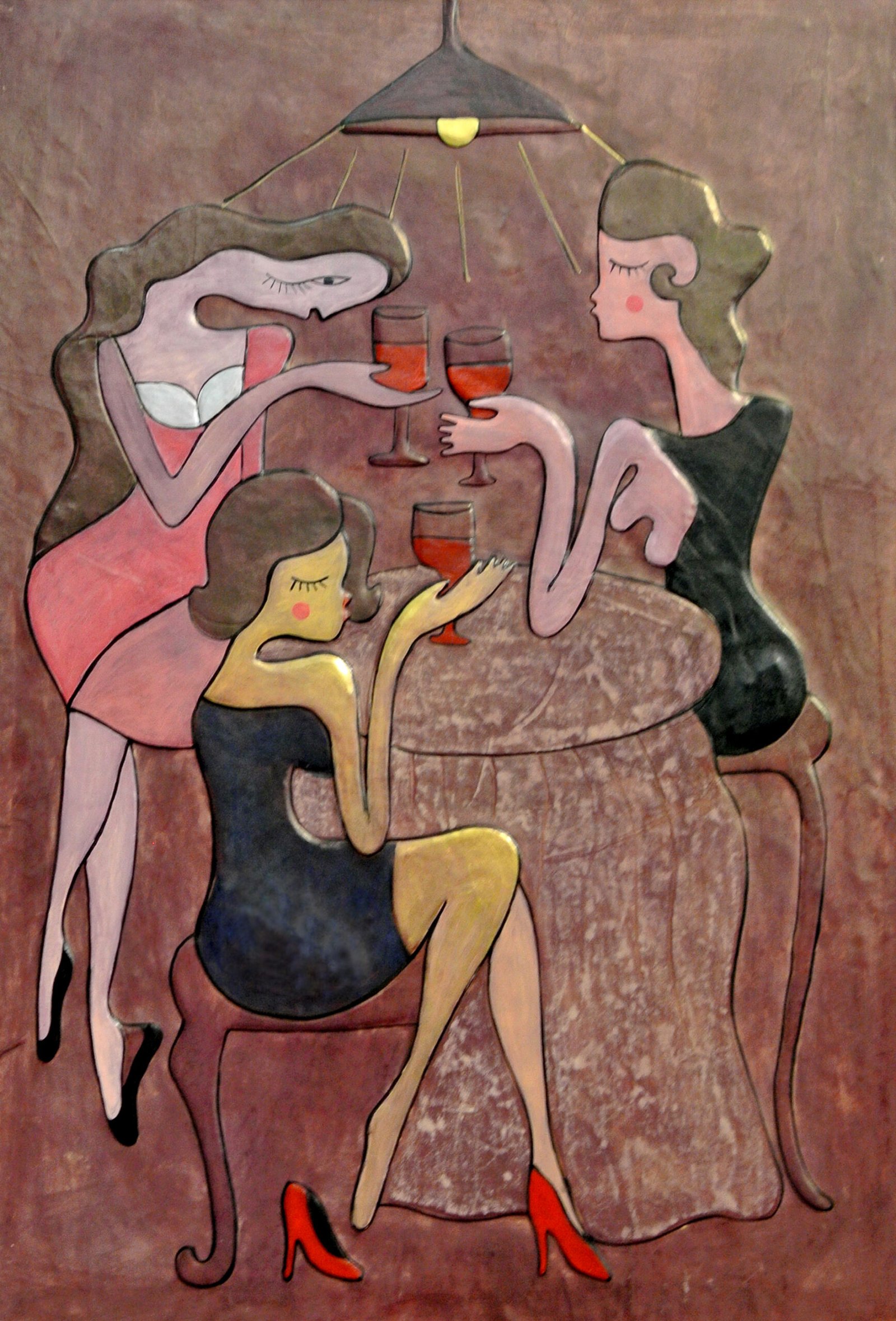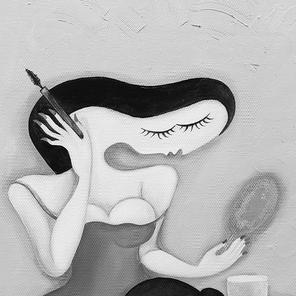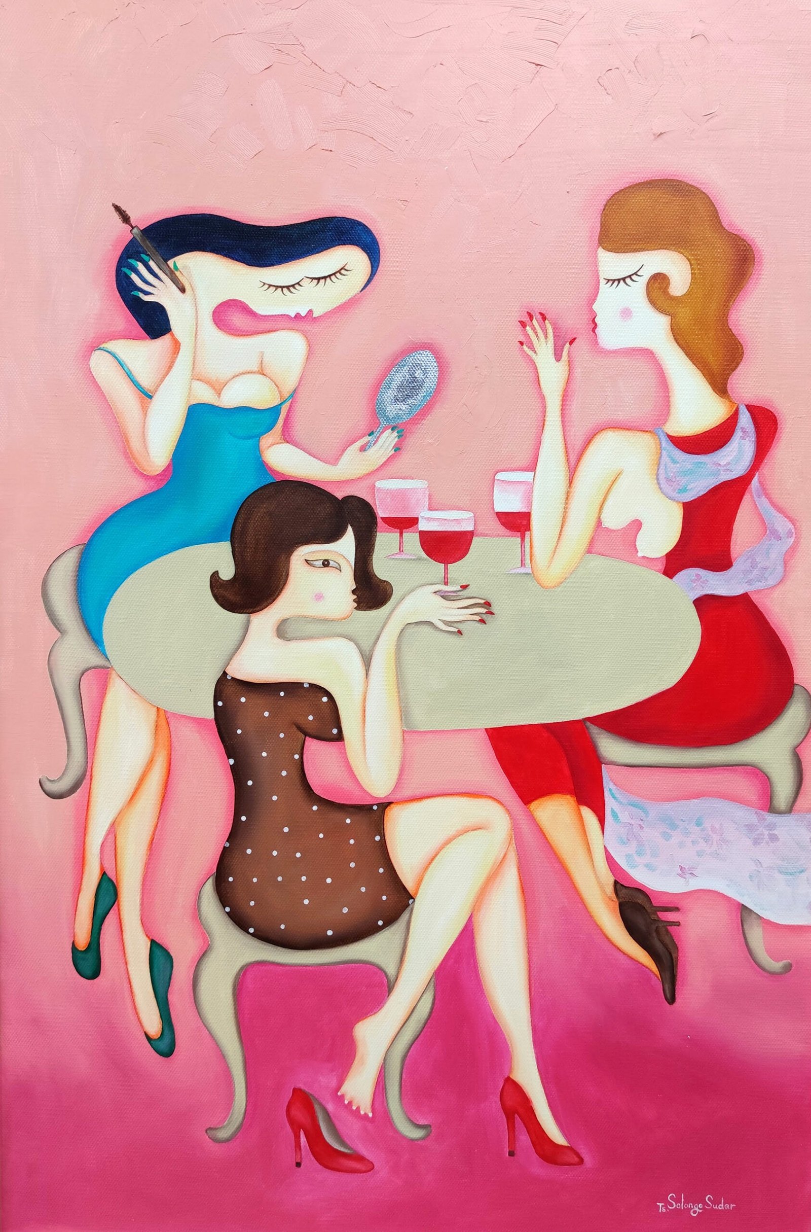 After reading a poem by poet A. Lkhagva, I created a composition based on my impression — first crafted with leather and later painted at a beauty salon. The women at the beauty salon recreated my painting in a photo shoot, and it turned out really lovely.
